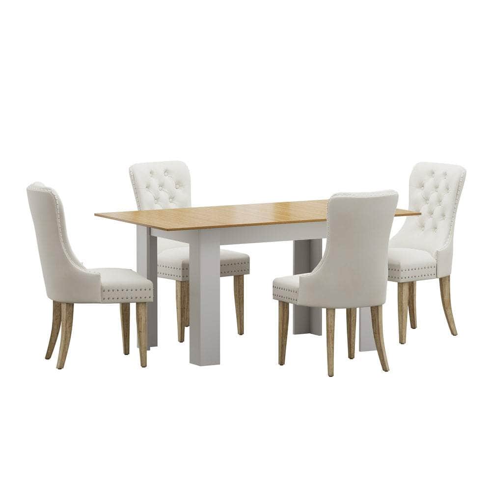 160cm Extendable Dining Table with 4PCS Chairs Velvet Beige