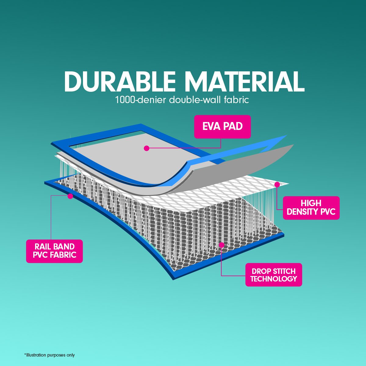 • 1000-denier double-wall PVC fabric (Drop stitch)
