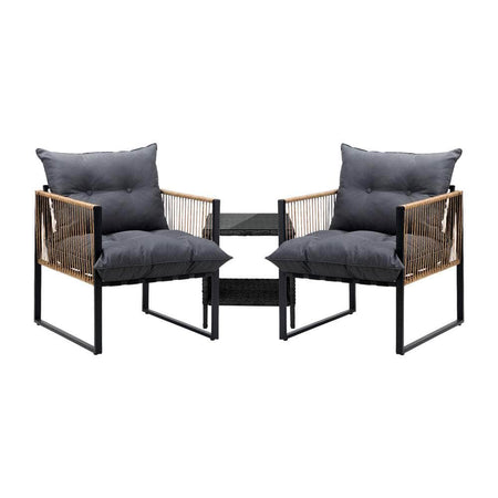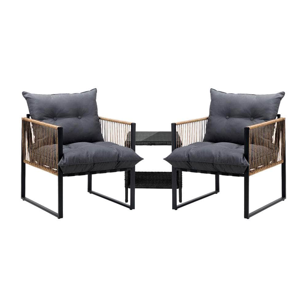 But how does the lounge set stand up to the harsh and sometimes fickle Australian weather? No worries mate as this delight set is all weather-resistant with strength and durability for robust use. Not least, this threesome setup also looks fabulous with any indoor eclectic styling ideas that you may have. Convinced that this delightful outdoor package is for you? Click on the Buy option and soon youll be having the best of company with the Outdoor Patio 3-pc Lounge Set in attendance.