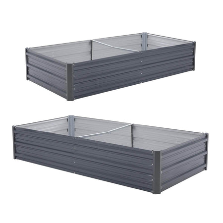Home Ready 2 Set Raised Garden Bed Galvanised Steel Planter Grow Veggie Plant Flowers 150 x 90 x 30cm - Grey