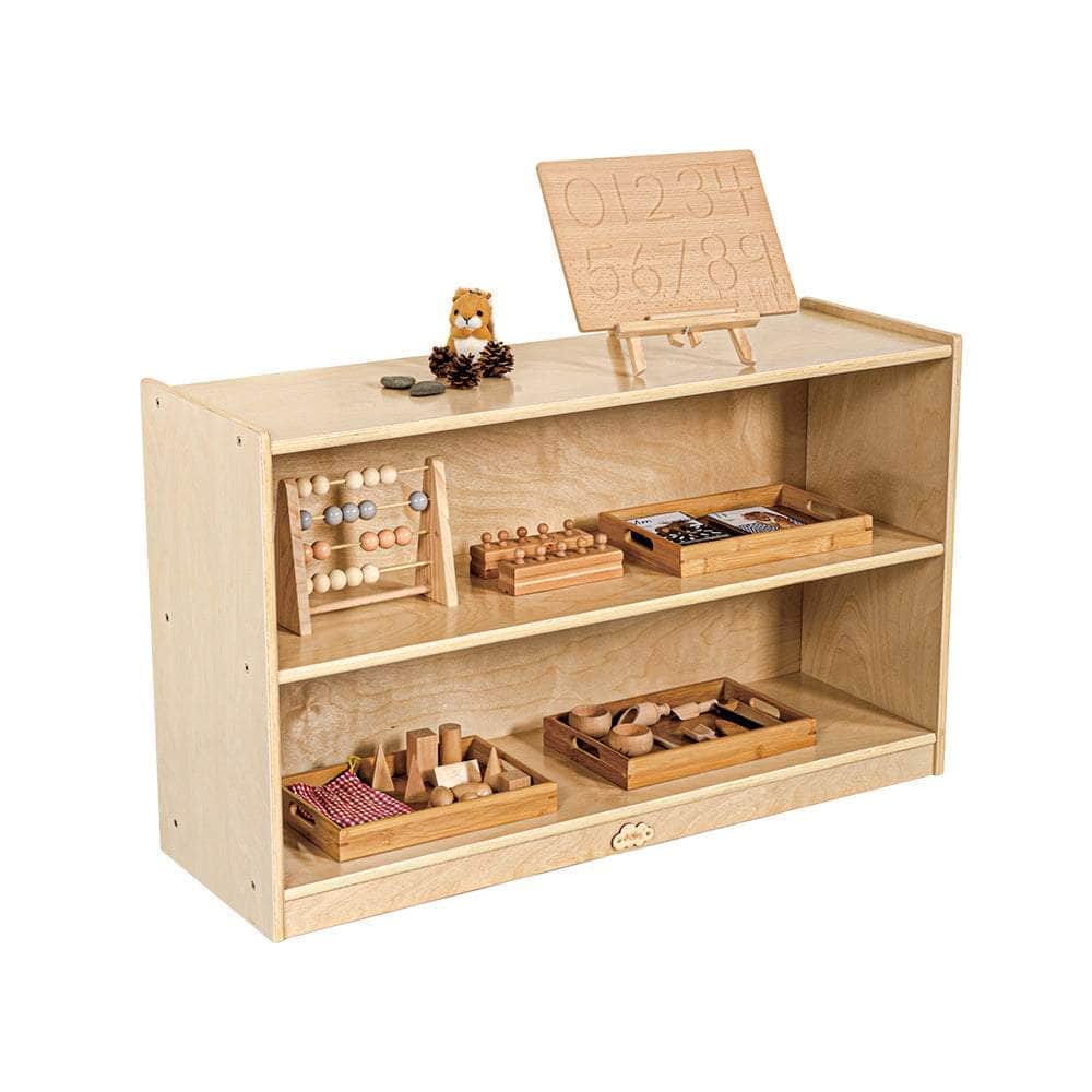 A perfect tool for teaching children the value of organization. This 2-shelf cabinetis crafted with amodern design - ideal for displaying and storing books, toys, teaching resources, and more. A smooth finish and simple lines make this cabinet the perfect decorative piece for any classroom or kids’ bedroom.