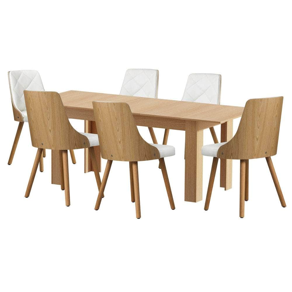Immerse yourself in the timeless charm of our Dining Chair and Extendable Table Set, featuring sleek lines and a contemporary aesthetic that effortlessly enhances any dining area. Crafted with meticulous attention to detail, the design strikes the perfect balance between modern sophistication and enduring elegance.