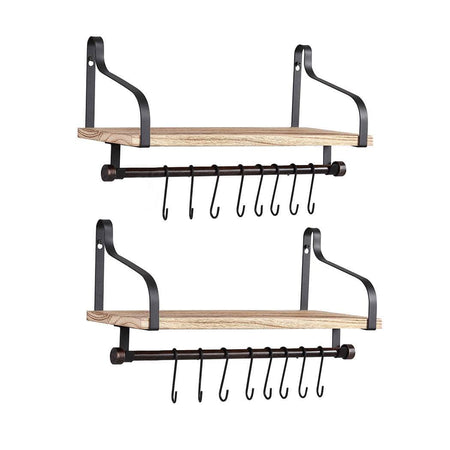 Use the bottom hooks to hang small items such as coats and umbrellas while displaying decorative pieces atop the flat shelf. These shelves are wonderful decorations and great additions to any wall space.