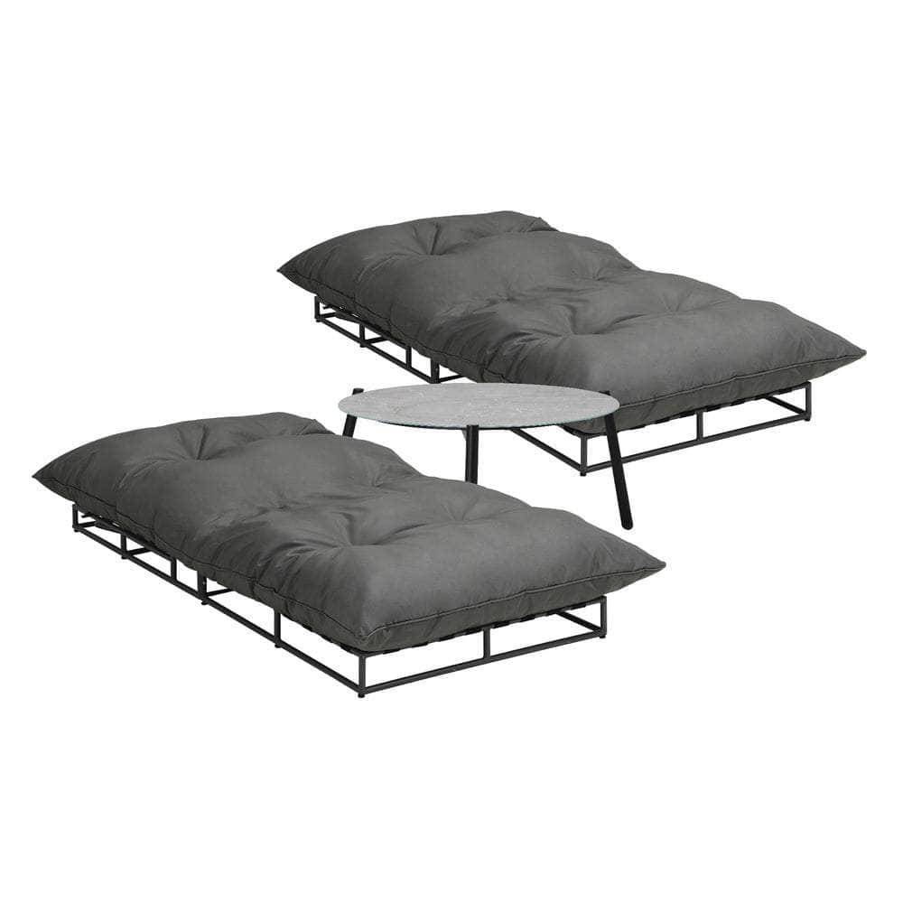 Beyond aesthetics, the versatile sun lounge set is built to exacting standards. The workmanship is meticulous with near-flawless finishing and close attention to details. Likewise, the three-legged profile of the coffee table is unique in stature with a black powder-coated steel construction.
