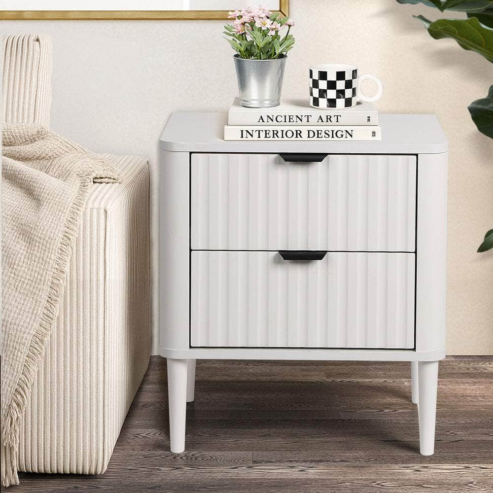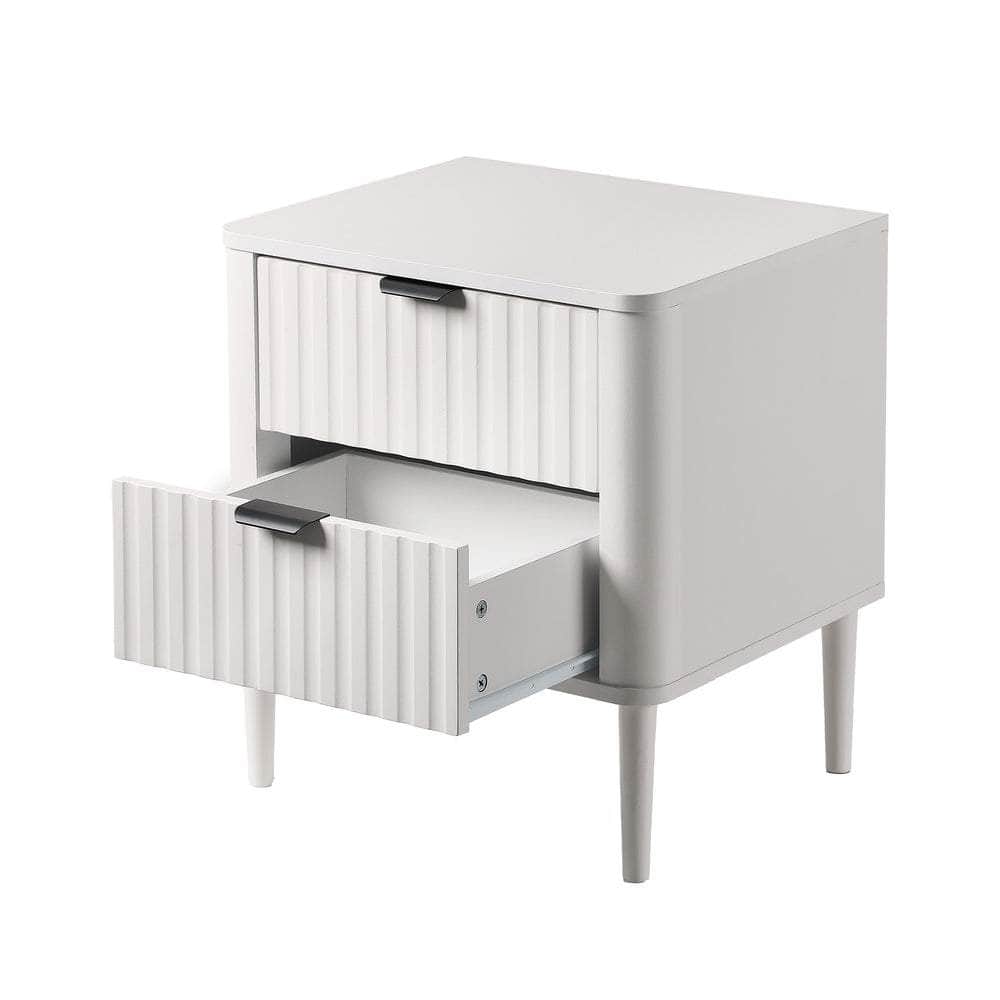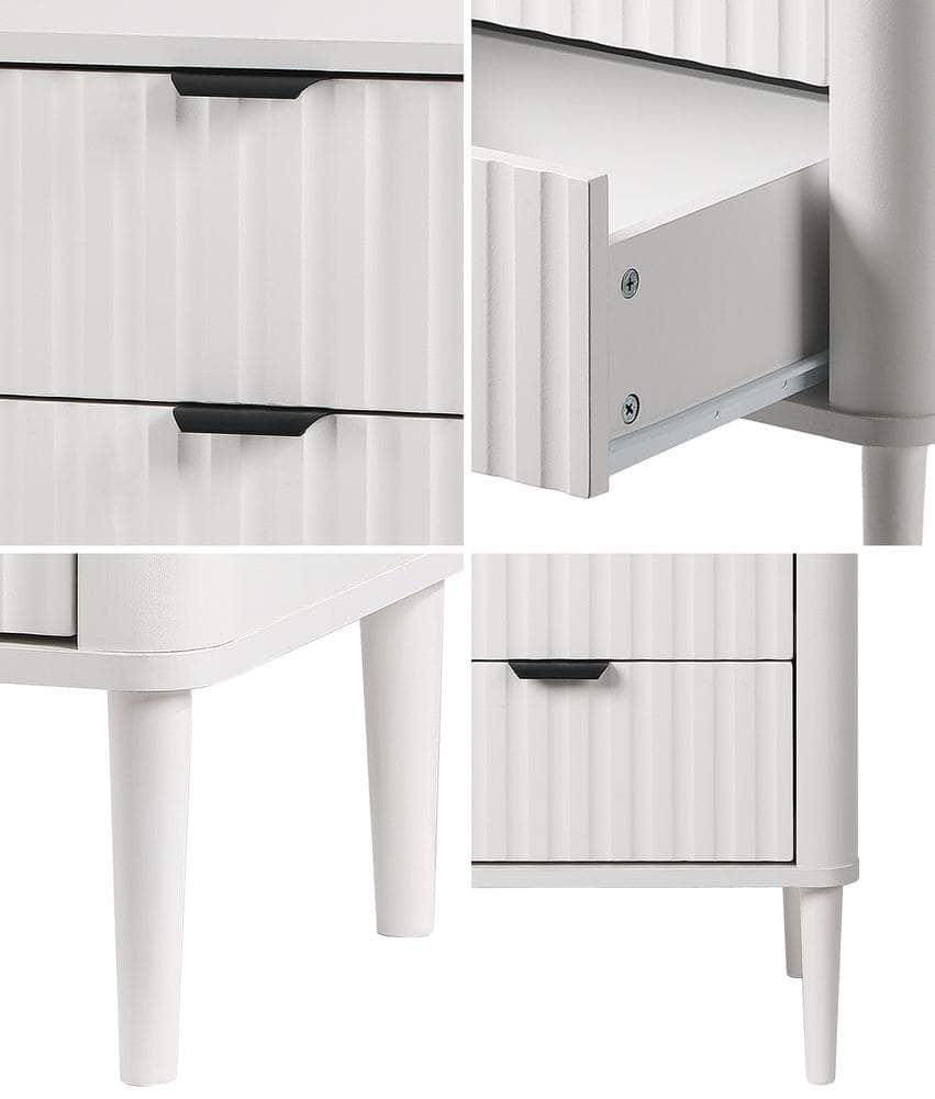 In terms of style, the bedside table has all the vibes of a post-modern piece that stands out from the ordinary. With character and presence to add chic touch to your décor. The twin drawers, with lined textured fronts, are blessed with ample space whilst the matching stylish aluminium alloy handles make for easy opening and closing.