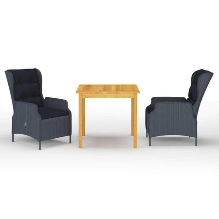 Create a compelling and cohesive aesthetic in your outdoor space with this garden dining set! The dinner table is made of solid acacia wood with an oil finish, which makes it stable, durable and easy to maintain. The outdoor chair, featuring a powder-coated steel frame covered with round PE rattan, is sturdy and easy to clean. The thickly padded cushions add extra comfort in your lounging time. The cushion cover is equipped with a zip, removable and washable. Thanks to the gas lift mechanism, the backrest is also adjustable to fit your positions. By touching the button on the side, the backrest can recline, for a comfortable lying position. Additionally, the garden chair is easy to move with its lightweight construction. Important note: We recommend covering the dining set during rain, snow and frost for its best service to last.