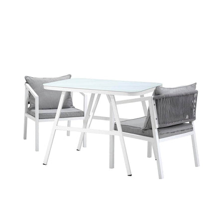 Living life to the fullest. Chilling out under the sun, moon and stars. Alfresco dining with friends, family or just with your precious me-time. Simply pursuing and enjoying life that is meant to be. And the Outdoor Dining Set is ready to be there at home with you. Stylish. Contemporary. Beautiful. For the dining table, a gorgeous tempered glass top. And for the dining chairs, equally attractive pieces that go well with the table. The set has all the attributes of chic outdoor furniture that resonate with your discerning lifestyle. Have your lattes, your favourite brews and savour delectable cuisines and other gastronomical delights. Eat, drink and be merry! But how does the dining set stand up to the harsh and sometimes fickle Australian weather? No worries mate as it is all weather-resistant, chairs and table, with strength and durability for robust use. Not least, this dining setup also looks fabulous with any indoor eclectic styling ideas that you may have. Convinced that this delightful outdoor package is for you? Click on the Buy option and soon you will be feasting to your (and many others too) heart is content at the Outdoor Dining Set day and night, night and day, in every season.