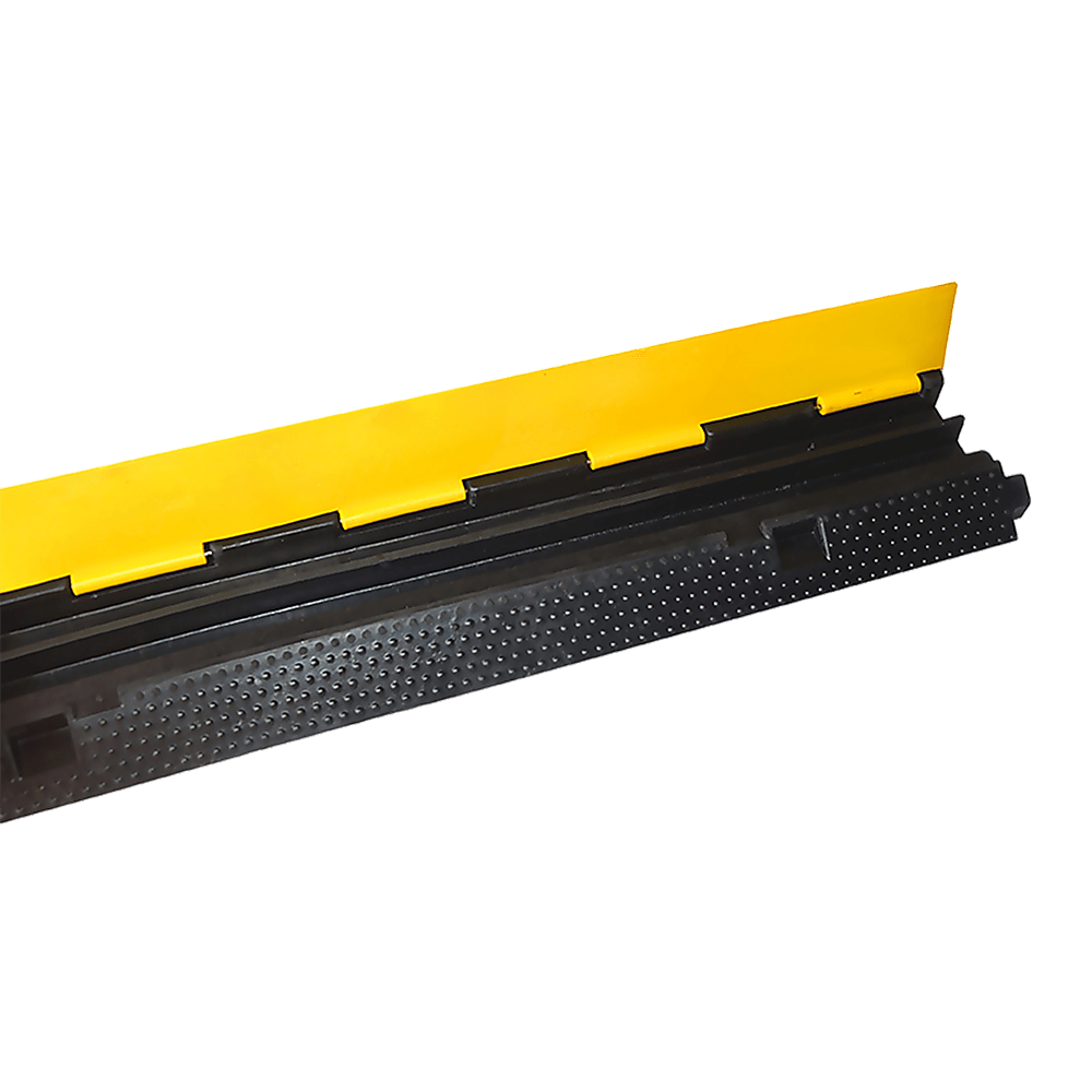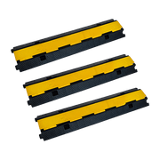 The dual channels are accessible through a PVC lid with written electrical safety warnings in writing and with international safety symbols. This system works equally well indoors and out to protect your cables and those who cross over them. Made from commercial-grade, heavy-duty thermoplastic rubber, these ramps have sloping sides to make it easy for carts and other wheeled vehicles to pass over.