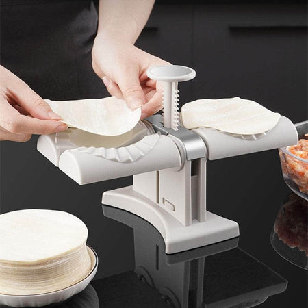 Place round dough wrapper on the open press, add 1-rounded spoon filling, moisten wrapper edges with water, squeeze handles together to seal.You can wrap two perfectly at a time!