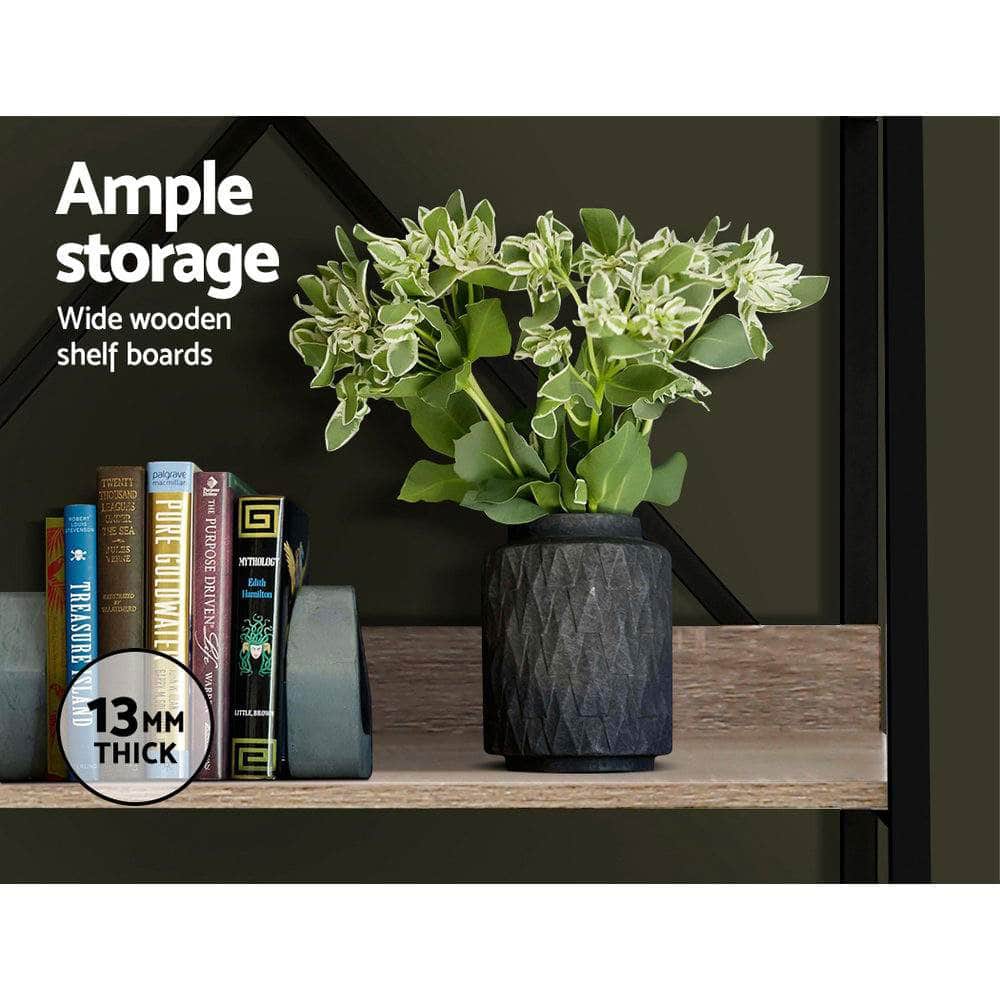 Running out of storage space for all those collectibles you took such effort to accumulate? Then our Artiss Display Shelf is exactly what you need. The modern and sleek display shelf has an eclectic design, combining wood and metal together. The spacious shelves provide the perfect setting to showcase all your favourite books, collectibles and other items openly for your houseguests to appreciate and admire. The display shelf is not only beautiful but durable, with a strong metal frame with black powder-coated finish and 12mm thick engineered wood board with oak grain surface. It also has sturdy legs with anti-scratch feet for a firm stand at all times. This space-saving display shelf has every feature that makes it a popular choice for the discerning home stylist.