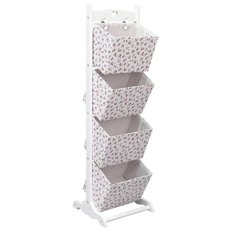 Our 4-layered basket rack is a fantastic solution to control chaos of storing household items, clothing, toys, underwear, bulky and quick grab items or other daily essentials. It is suitable for any room of the house or office. Made of quality MDF and paulownia wood frame, this rack is in strong support and ensures years of reliable use. Four baskets inside are large and deep, allowing for more room in which to place your items. The basket is removable and can fold flat for easy storage when not in use. The basket rack is easy to assemble.