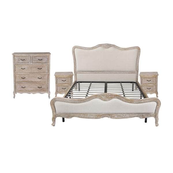 Refresh your room with our brand new Lille bed frame, featuring Oak Wood frame with white washed finish. White washed finish on wood brings timeless look whereas upholstered bedhead and footboard brings contemporary vibe in your bedroom. Lille bed is available in King and Queen sizes, So choose your convenient one and co-ordinate it with other furniture pieces from the Lille series.