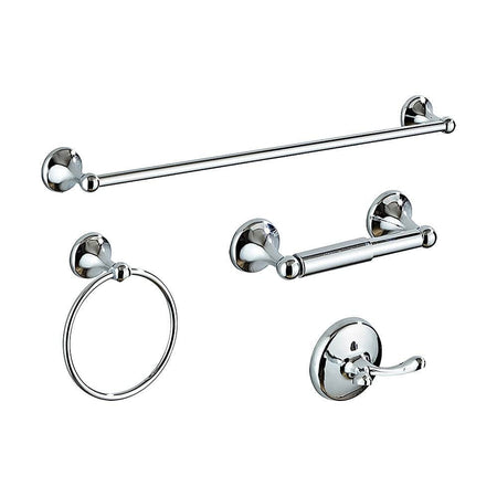For a sleek, contemporary look in your bath, this chrome four-piece bath set from Randy Travis Machinery is the perfect choice. With its 60-centimetre towel bar, you'll have plenty of space to display your finest bath towels, together with a towel ring which adds to capacity. A double robe hook and a wall-mounted toilet paper holder complete the set.