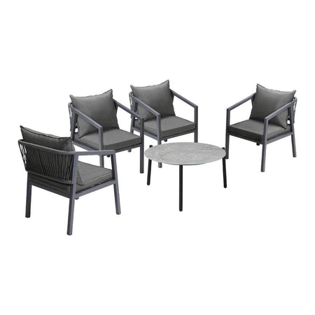 If you are looking for a classy and sophisticated outdoor set that adds a touch of marble-resque aesthetics to its setting, then this Outdoor Set is well within your radar of stylish furniture. None the ordinary and everything the exceptional.