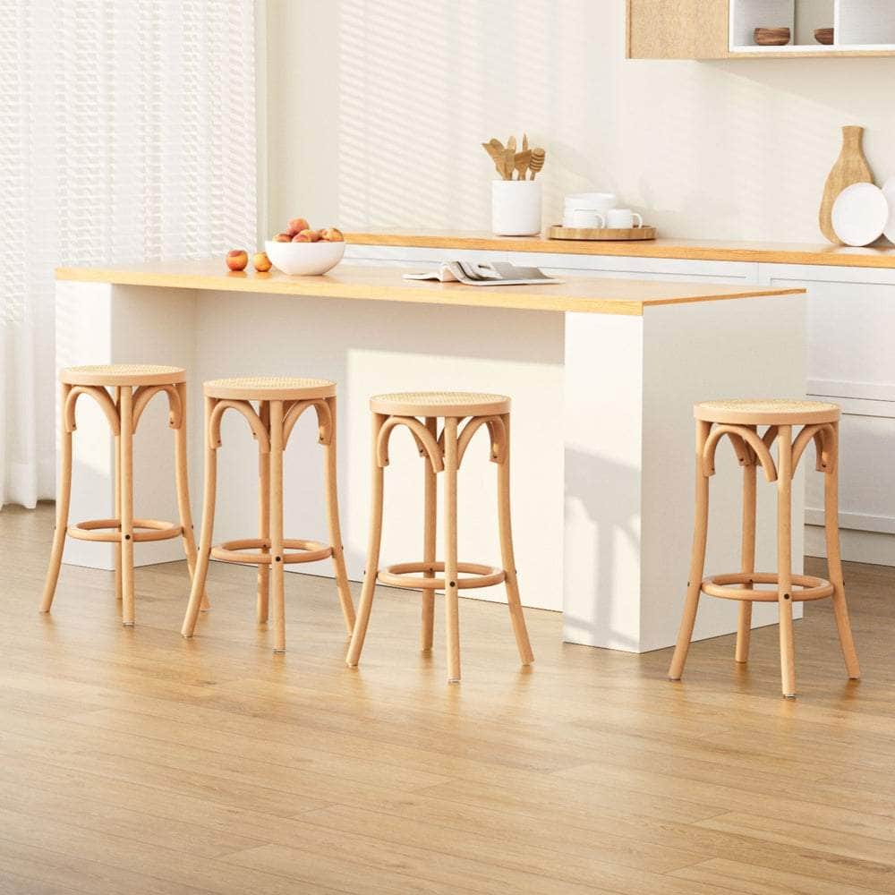 With its warm tones and timeless style, the Apri Bar Stool makes a charming addition to any home, restaurant or bar. Made from a solid beechwood frame with a stylish rattan seat, this classic design will bring warmth and depth to your home décor. The real rattan seat is well-ventilated, easy to clean and has a natural, organic feel that will support your guests throughout the evening. The frame features a smooth finish and safe rounded edges that are pleasant to the touch. With a 150kg weight capacity, a sturdy footrest and anti-slip feet, the stools will stay firmly in place throughout the evening even with robust use. Easy to assemble and even easier to maintain, you and your guests will love the inspired Apri Bar Stools.