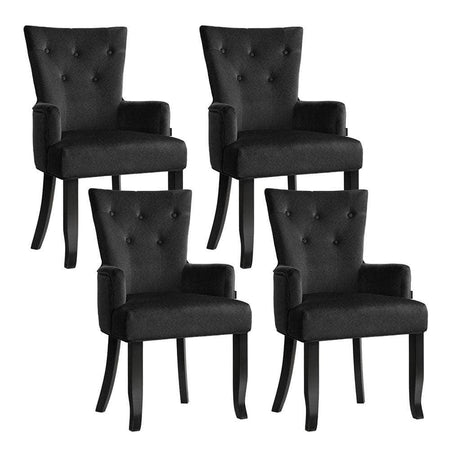 4x Dining Chairs Velvet French Provincial Armchair Black - Stylish