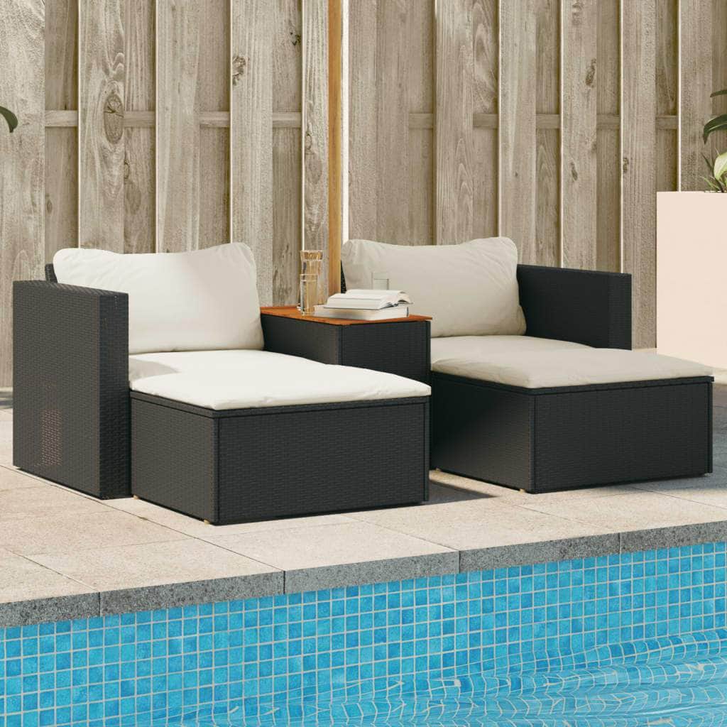 This garden sofa set is the perfect addition to your backyard, terrace, or patio, providing a comfortable and inviting space for chatting with family and friends or simply relaxing and enjoying the outdoors. Durable material: PE rattan, also known as poly rattan, is a strong, low-maintenance synthetic material that looks like natural rattan. It's lightweight, easy to clean, and commonly used for outdoor furniture due to its durability and weather-resistant properties.Comfortable seat experience: This outdoor furniture, complete with thickly padded cushions, offers a comfortable seating experience.Stable and easy-to-clean tabletop: This garden table has an acacia wood top that is sturdy, durable, and easy to clean with a damp cloth.Removable and washable cover: These seat cushions feature removable covers for easy washing and maintenance.Modular design: This outdoor furniture set has a modular design, making it completely flexible and easy to move around, so you can create a customised outdoor furniture arrangement. Good to know:To make sure your outdoor furniture stays beautiful, we recommend protecting it with a waterproof cover.