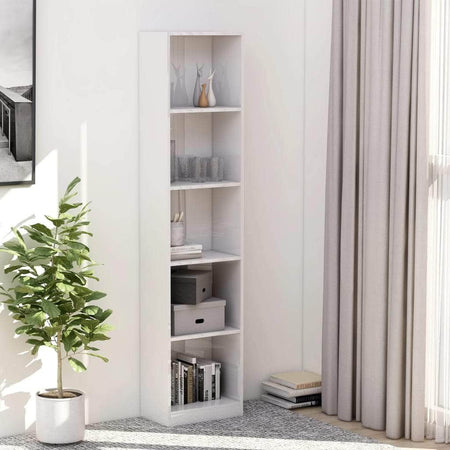 Featuring a sleek and classic design, this book cabinet will make a decorative as well as practical addition to your decor. The cabinet is made of quality engineered wood, which ensures it sturdiness, durability and long service life. Designed with 5 spacious compartments, the bookshelf offers ample storage space for keeping your magazines, books, DVDs, multimedia devices and other decorative items well organised and within reach. Additionally, as a versatile shelf, the book rack is also a perfect storage solution for your hallway and any other living space. The book rack is easy to clean with damp cloth. The book stand is easy to assemble.