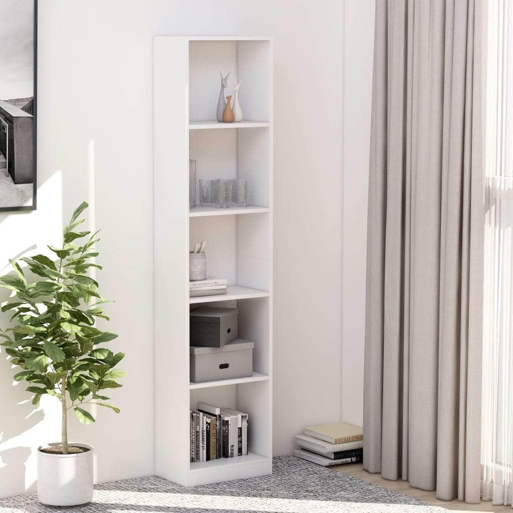 Featuring a sleek and classic design, this book cabinet will make a decorative as well as practical addition to your decor. The cabinet is made of quality engineered wood, which ensures it sturdiness, durability and long service life. Designed with 5 spacious compartments, the bookshelf offers ample storage space for keeping your magazines, books, DVDs, multimedia devices and other decorative items well organised and within reach. Additionally, as a versatile shelf, the book rack is also a perfect storage solution for your hallway and any other living space. The book rack is easy to clean with damp cloth. The book stand is easy to assemble.