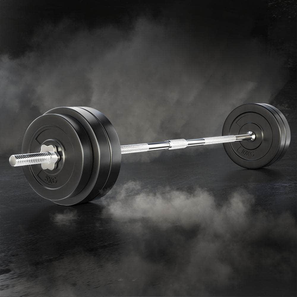 Made of strong materials, these Home Gym Weight Plates will allow you strengthen and tone your muscles at home with ease. These weight plates are filled with sand and covered with robust, floor-friendly rubber to minimize noise and floor damage. Easily add and remove plates to ensure an appropriate workout for your specific muscles. Plus, the included solid chrome plated steel Barbell Bar, holds up to 150kg and is compatible with most standard 31mm - 35mm hole weight plates, so you can work at any weight. Choose from the fitness range that is both good for your body and good for your wallet.
