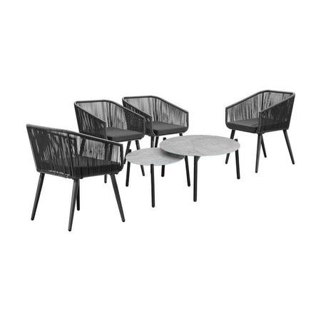 If you are looking for a classy and sophisticated outdoor set that adds a touch of marble-resque aesthetics to its setting, then this Outdoor Set is well within your radar of stylish furniture. None the ordinary and everything the exceptional.