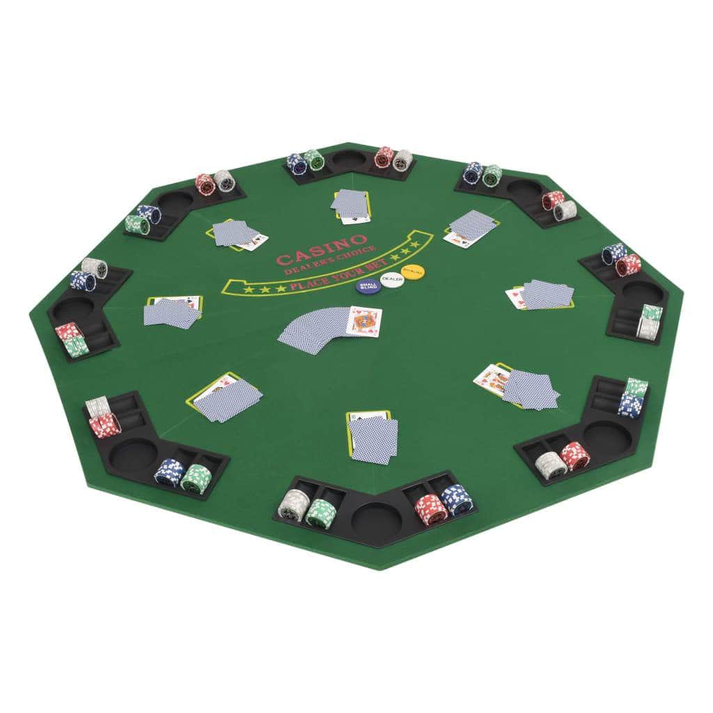 Host a professional poker game in the comfort of your own home. The special green upholstery makes it easy to slide chips and playing cards over the table. The casino tabletop is designed with 8 cup and chip holders so each player has his or her own place. When not in use, you can easily fold the poker tabletop and store it. Simply place our folding poker tabletop on your dining table and start playing! Note: poker chips and playing cards are not included.
