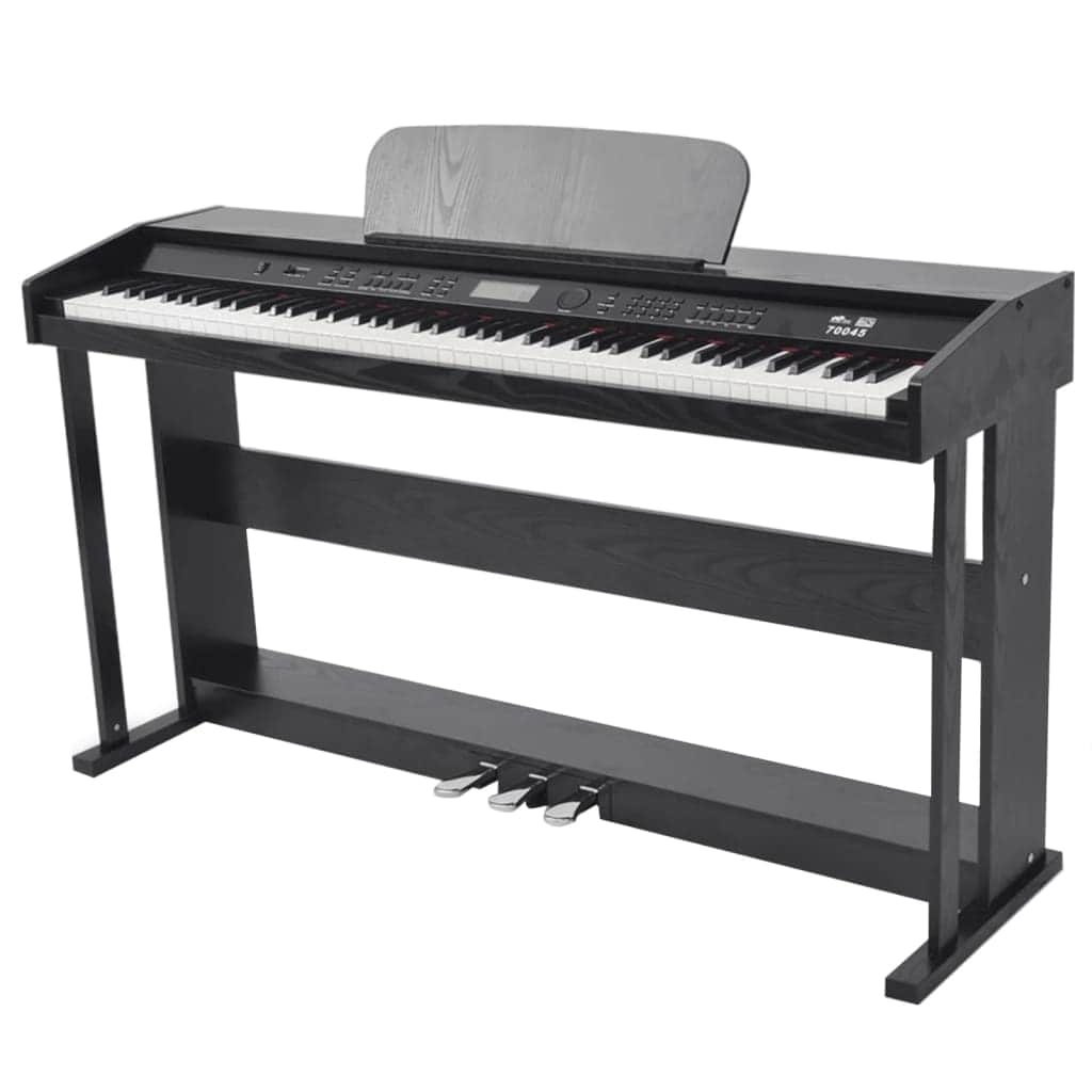 This digital piano is very well programmed with 50 built-in demo songs and 150 different sounds, along with 100 auto-accompaniment styles. It also features 3 built-in pedals and several effect controls such as chorus and reverb. Easy to master, this 88-key electronic piano is a great choice for complete beginners and intermediate-level players. Made of high-quality melamine board, the compact piano cabinet is very sturdy and durable. The built-in music stand will hold your sheet music or songbooks. There is a headphone jack (6.35 mm) that ensures you will not be disturbed when practicing, and do not disturb others. Delivery also includes an adapter for the piano and a power cord. Assembly is easy.