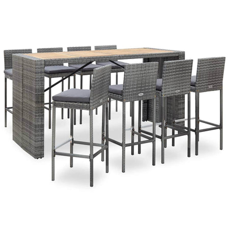 This poly rattan bar set will become an eye-catcher in your garden. Thanks to the water-resistant PE rattan, the patio bar set is easy to clean, hardwearing and suitable for daily outdoor use. It comes with a vintage table to match our elegant chairs. The tabletop is made of solid acacia wood, which is durable and easy to clean. The powder-coated steel frames make the set sturdy and stable, but since the construction is also lightweight, all items are easy to move around to suit any setting. It is also delivered with highly comfortable, thickly-padded seat cushions for the ultimate comfort. The low-maintenance polyester covers can also be removed and washed. This set is easy to assemble. Note: We recommend covering the set during rain, snow and frost for its best service to last.