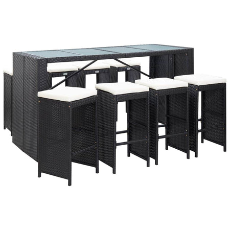 This poly rattan outdoor bar set will become an eye-catcher in your garden. Thanks to the water-resistant PE rattan, the patio bar set is easy to clean, hardwearing and suitable for daily outdoor use. It comes with a contemporary table to match our elegant stools. The powder-coated steel frame makes the set sturdy and stable, but since the construction is also lightweight, all items are easy to move around to suit any setting. It is also delivered with highly comfortable, thickly-padded seat cushions for the ultimate comfort. The low-maintenance polyester covers can also be removed and washed. This set is easy to assemble. Note: We recommend covering the set during rain, snow and frost for its best service to last.