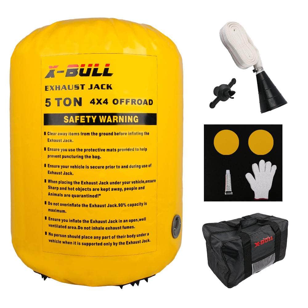 [Unique role]The exhaust jack can be used on hard ground and special terrain such as sand, mud and snow. Air jack can lift up to 5000kg of vehicles, which is equivalent to the weight of a truck. Therefore, the jacks can be applied to most car.