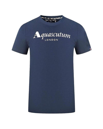 Aquascutum Men'S Midnight Blue/White/Grey Cotton Tee Shirt