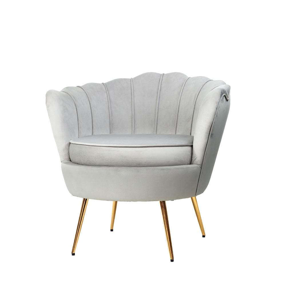 Iconic design Timeless appeal. Our Armchair is the epitome of trendsetting style designed for the bold and passionate. With its thick padding of high resilience foam and velvet fabric upholstery, the armchair is perfect as a reading chair or a favourite relaxation seat. The vintage-style scallop shell back wraps around and hugs your body to provide perfect support and comfort. The splayed metal legs in glamorous gold give the armchair loads of character as well as providing a very stable base. Not least, the workmanship is meticulous with the fluid corners and sturdy wooden frame. The armchair will blend well with any setting from classic to contemporary and will also soften the flow of rooms with angular furniture and accents.