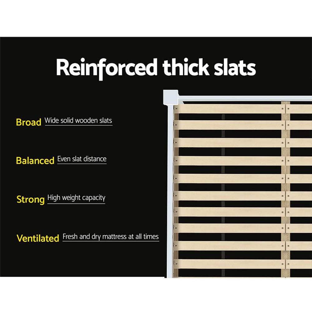 Made of solid pine wood, the Rio Bed Frame is compatible with most Australian sized mattresses and ideal for use by both young and old alike. Strong and sturdy, the bed frame comes with a durable plywood slated base, reinforced angled brackets for long term support, stylish headboard, heavy-duty steel fixings and smooth edges all round. Finished in a non-toxic, eco-friendly white paint, the neutral-coloured bed frame makes for easy décor coordination. Better still, the bed frame also has ample room below it to fit in a pair of optional trundle drawers or any other storage boxes.