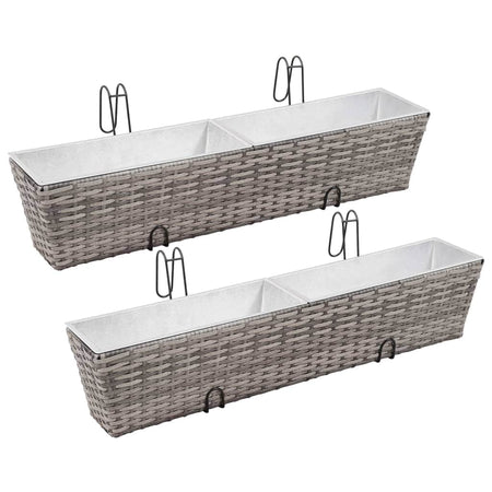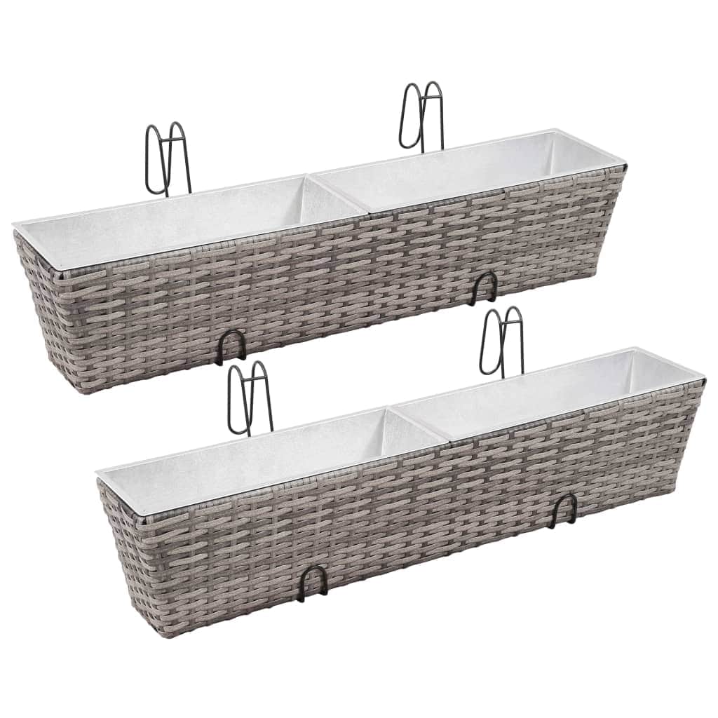 Grow and showcase flowers or plants with our PE rattan balcony raised bed set! These planters are made of weather-resistant and maintenance-free PE rattan. Therefore, they are perfect for outdoor use. Meanwhile, the metal frame adds the planters' sturdiness and stability. Thanks to the integrated hooks, these garden planters can be easily attached to your windowsills or balcony raillings. These balcony planters are easy to clean with a damp cloth. Each planter is equipped with two removable zinc inner pots. Get ready to add a touch of green to your balcony with our beautiful planters! Delivery includes 2 railing planters.