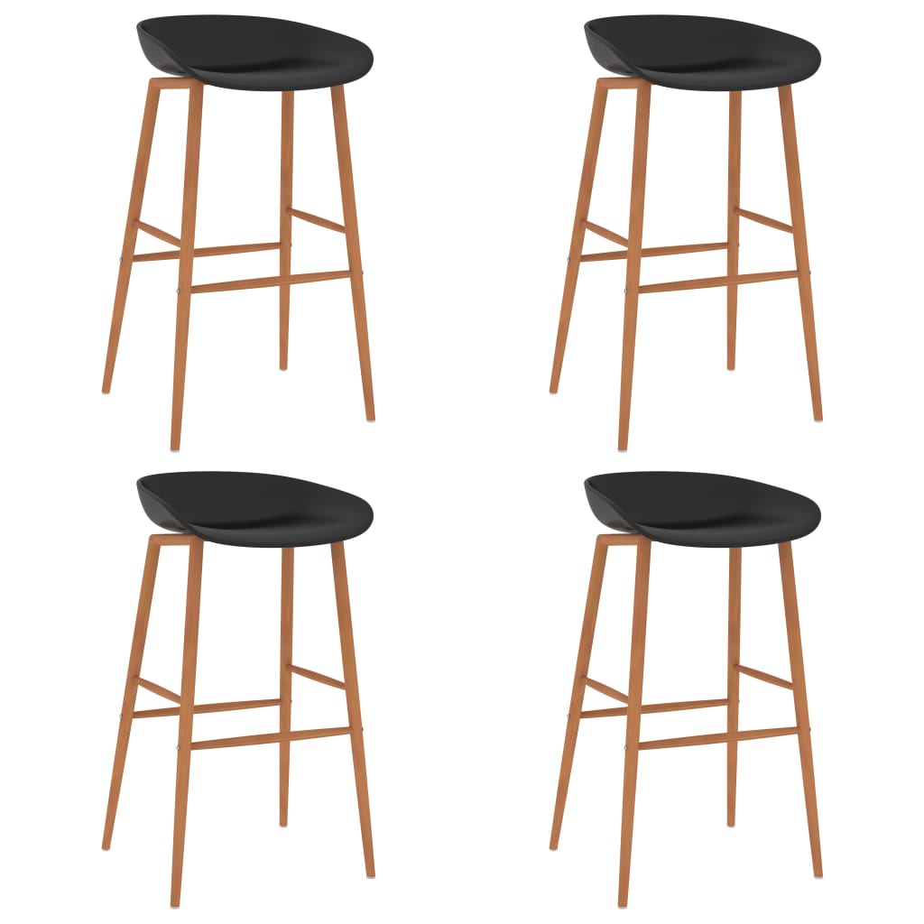 Our set of 4 bar chairs is ideal for enjoy a few sips of wine in the bar, grabbing a bite at the counter or for use as extra seats when you invite guests over. These pub chairs have an ergonomically designed seat with integrated low backrest. Made of robust PP and supported by strong metal legs with heat transfer print in wood look, these counter chairs are sturdy and durable. These bar chairs are easy to assemble.