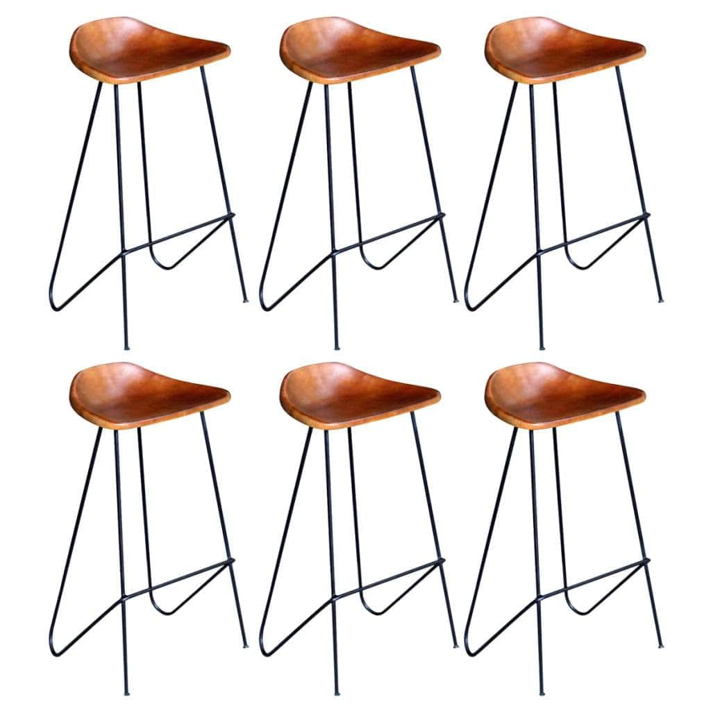 This soft and comfortable real leather bar chair has an iconic look, in keeping with the industrial style that's all the rage right now. It will look great not only in restaurants or bars, but also in your living room or dining room at home. The upholstered genuine leather is soft to the touch and makes the stool extremely durable. The soft goat leather surface makes for a comfortable seating experience, while the solid iron legs with footrest make the stool stable and durable. Delivery includes 6 leather bar chairs.