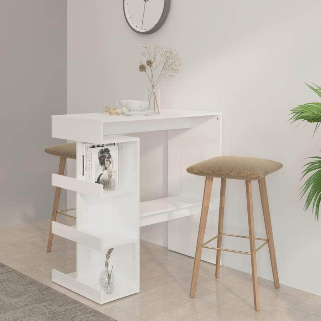 Bar Table With 3 Storage Rack High Gloss White