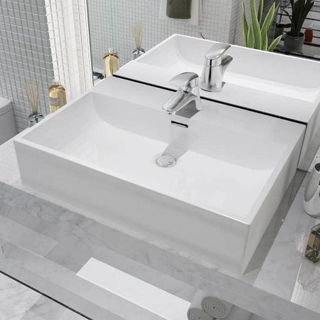 This wash basin, made of premium ceramic, will be a stylish addition to any bathroom, washroom or powder room. Its glazed surface brings itself a modern yet elegant design. This artistic ceramic basin is more than just a practical vessel for everyday use, but it is an adornment for your living space. It will definitely suit any interior style. In addition, the basin is quite easy to clean. An overflow is equipped to flow water out when it gets too full. A faucet hole of diameter 3.7-3.8 cm is included to install a tap. The drain hole is 4.5 cm in diameter. Please note that the tap and the drain are not included in delivery. If you want to wall mount this basin, it needs to be fixed by bolts.