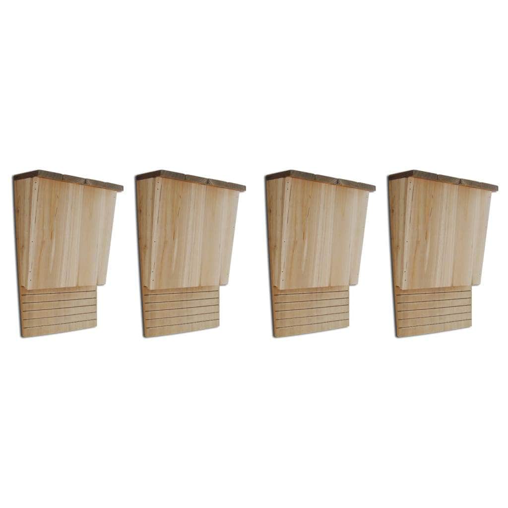 Bats are not only beautiful creatures, but also very helpful as they eat pests. With this lovely set of wooden bat nest boxes, you can invite them into your garden by providing them with shelters. These nest boxes are specifically designed as roosting sites for bats. The long landing pad ensures easy access. Each single-chambered house has ample space and will accommodate a dozen of your winged friends. Equipped with a metal hook, they are ready to be mounted in your garden. Delivery includes 4 bat houses.