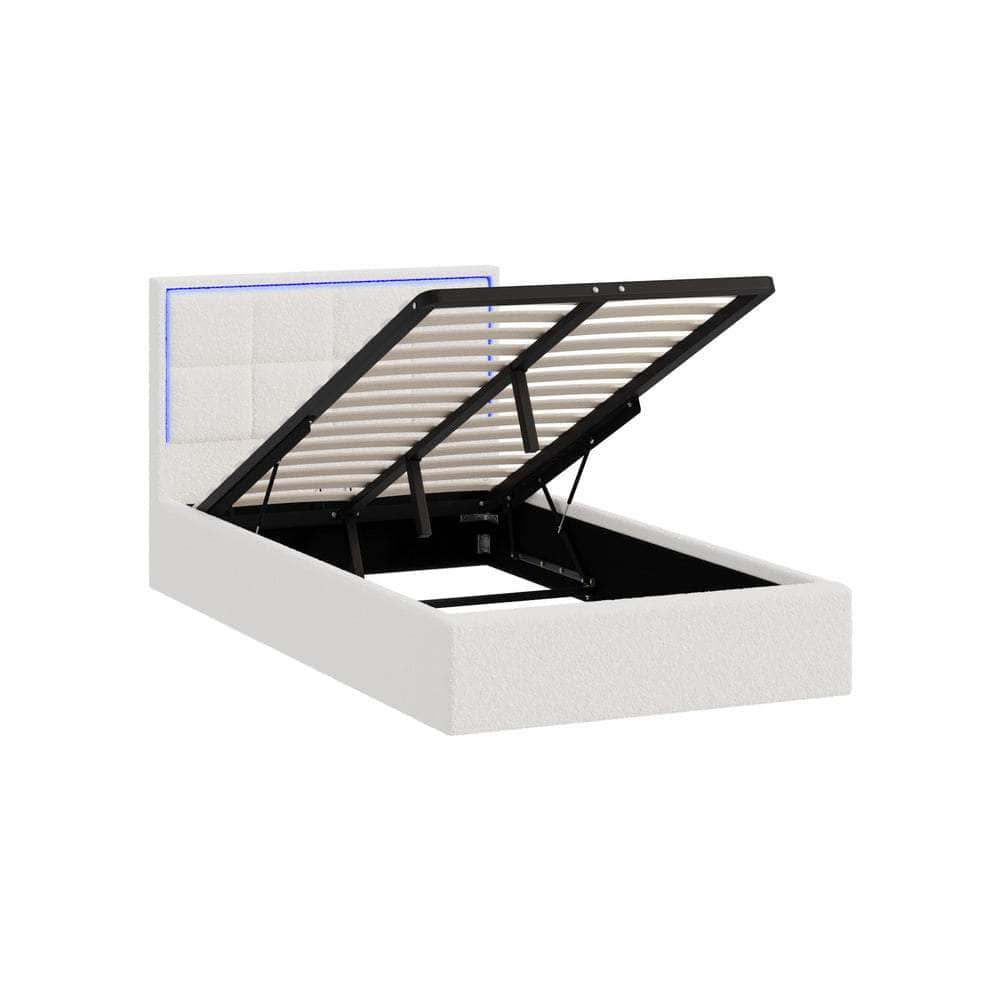 Featuring a well-padded contemporary bedhead design, the Gas-Lift Bed Frame exudes bespoke elegance and adds a luxurious presence to any bedroom decor. The sophistication factor is even more prominent with a choice of premium boucle fabric upholstery that covers the bed frame from head to end. Soft to the touch that lends a swank and intimate aura to accompany your calm and restful sleep.