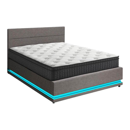 But there is more to the bed frame than just an attractive appearance. Embedded within its design are LED lights with 16 colour variations with four flashing modes to illuminate your bed in style and create the desired ambience for restful sleep.