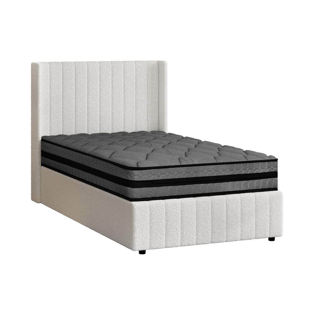 Featuring a well-padded winglet bedhead and bed end design with premium boucle fabric upholstery, the Gas-Lift Bed Frame exudes bespoke elegance and adds a luxurious presence to any bedroom decor. Soft to the touch that lends a swank and intimate aura to accompany your calm and restful sleep.