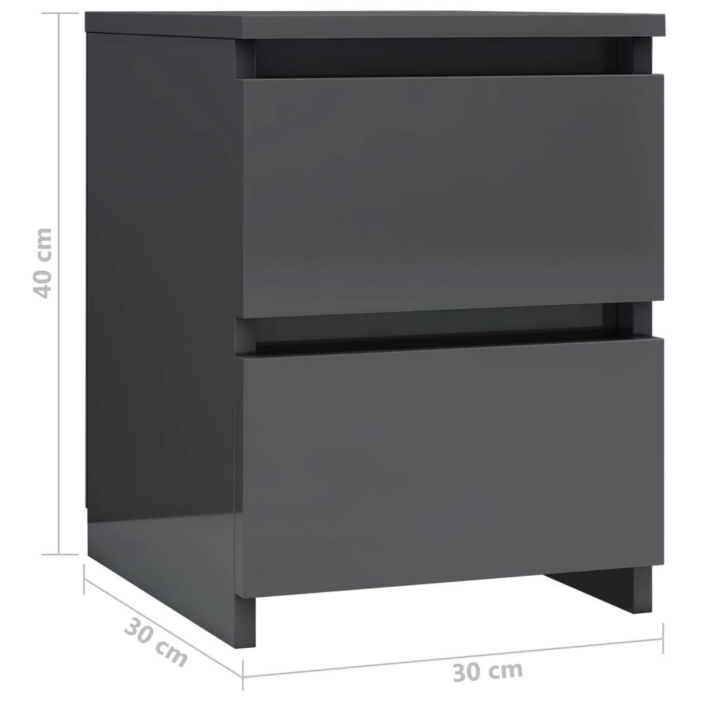 Bedside Cabinets 2 pcs High Gloss Grey Chipboard
