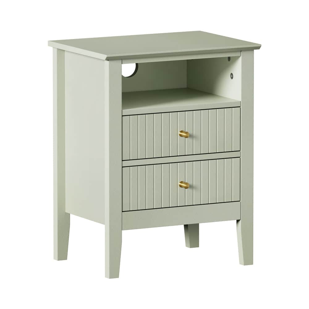 In terms of style, the bedside table has all the vibes of a cottage-inspired piece that stands out from the ordinary. Its eye-catching stripe textured drawer front is matched with attractive woodgrain finish throughout for stylish aesthetics. Loads of character and presence to add a rustic touch to your decor. The bedside table offers ample closed and opened storage whilst the brass handles make for easy opening and closing besides their aesthetic qualities.