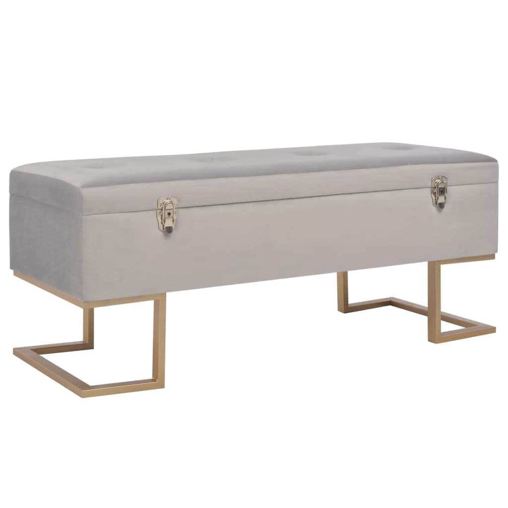 Our velvet bench will surely make an eye-catching addition to your living room, hall or lounge. The grey velvet upholstery is soft to touch as well as highly cosy, giving a splash of colour to your interior. It has an interior storage compartment, which provides extra space to store your various items. Additionally, the powder-coated iron legs with a gold painting add the entryway bench's stability and durability. Our bench will enchantingly decorate your living space and be an indispensable part of your room. The velvet bench is easy to assemble.