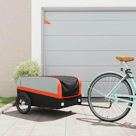 This versatile and sturdy bike trailer will be ideal for transporting heavy goods thanks to its maximum load capacity of 45 kg. Sturdy material: Iron is a strong and hard material. It's a solid favourite in industrial and furniture construction. Made of iron, this bicycle cargo trailer is very sturdy and durable.Practical design: This bike cart with a maximum load capacity of 45 kg, is perfect for hauling heavy goods like luggage, plants, tools or groceries.Considerate design: The bike trailer has a tow bar that makes it easy to connect it to a bicycle. At the same time, a safety flag is included for extra visibility.