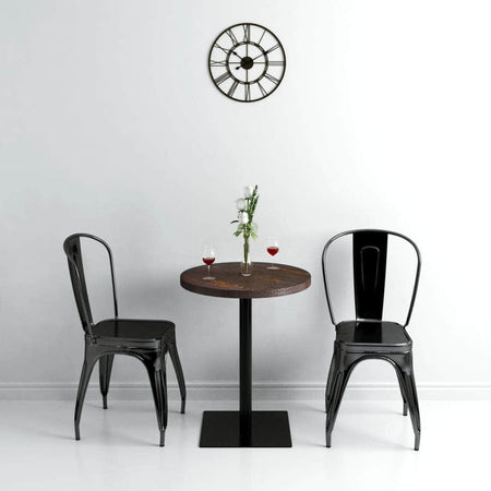 Create a romantic French atmosphere with our elegant bistro table. The tabletop is made of MDF with a grain finish and is supported by a steel leg and base. It is easy to clean with just a damp cloth. Use it as a single piece in your interior, restaurant, coffee shop or bar. Assembly of this item is easy.