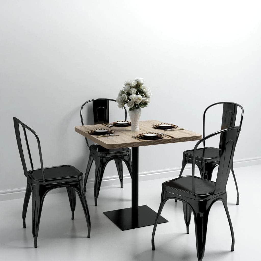 Create a romantic French atmosphere with our elegant bistro table. The tabletop is made of MDF with a grain finish and is supported by a steel leg and base. It is easy to clean with just a damp cloth. Use it as a single piece in your interior, restaurant, coffee shop or bar. Assembly of this item is easy.