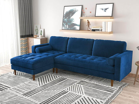 Package contents: 1xVelvet Upholstery 2 Seater Tufted Sofa Blue Color Lounge Set for Living Room Couch with Chaise