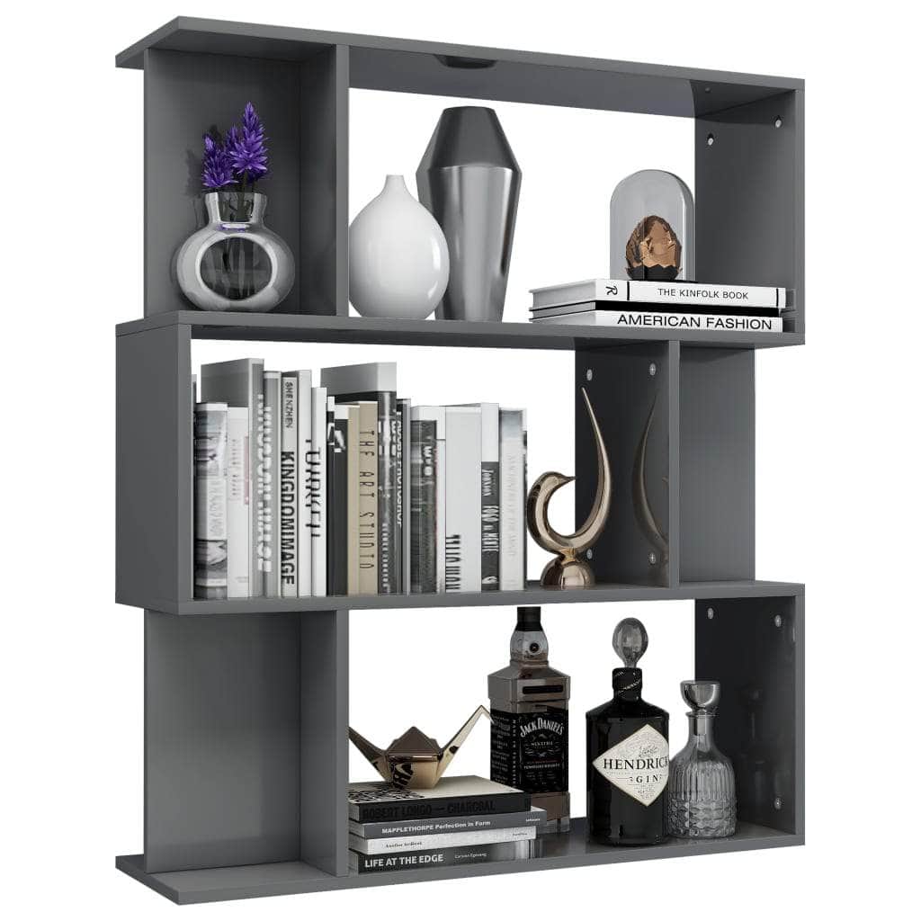Book Cabinet/Room Divider High Gloss Grey Chipboard